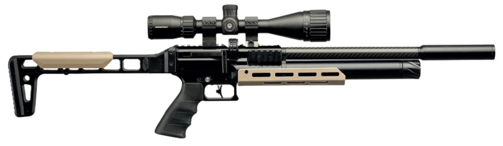 The Snowpeak AP900 is a compact, precision-built PCP air rifle engineered for shooters who demand power and portability. Weighing just 1.6 kg and fitted with a folding synthetic stock, the AP900 collapses from a full length of 855 mm to a folded 600 mm for easy transport and storage. An integrated regulator and a 310 mm rifled barrel deliver consistent accuracy, while a generous 118 cc reservoir charged to 250 bar provides dependable shot-to-shot performance.